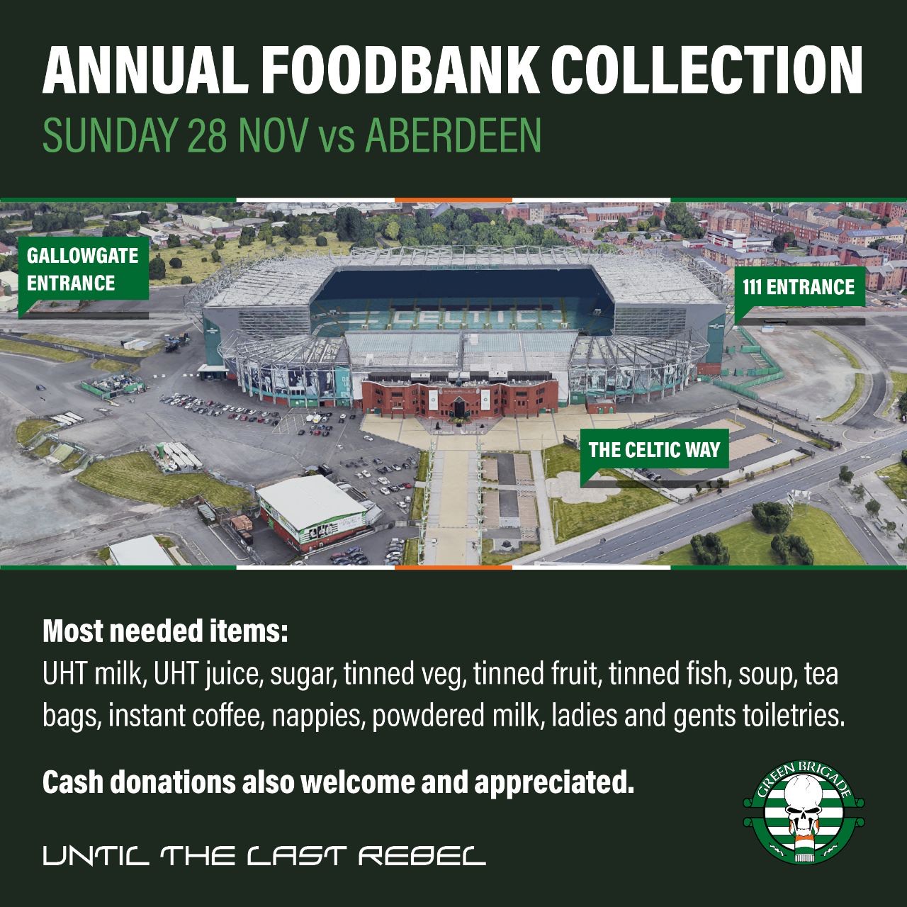 The Green Brigade are holding their annual food drive on Sunday 28th November at our game against[…]